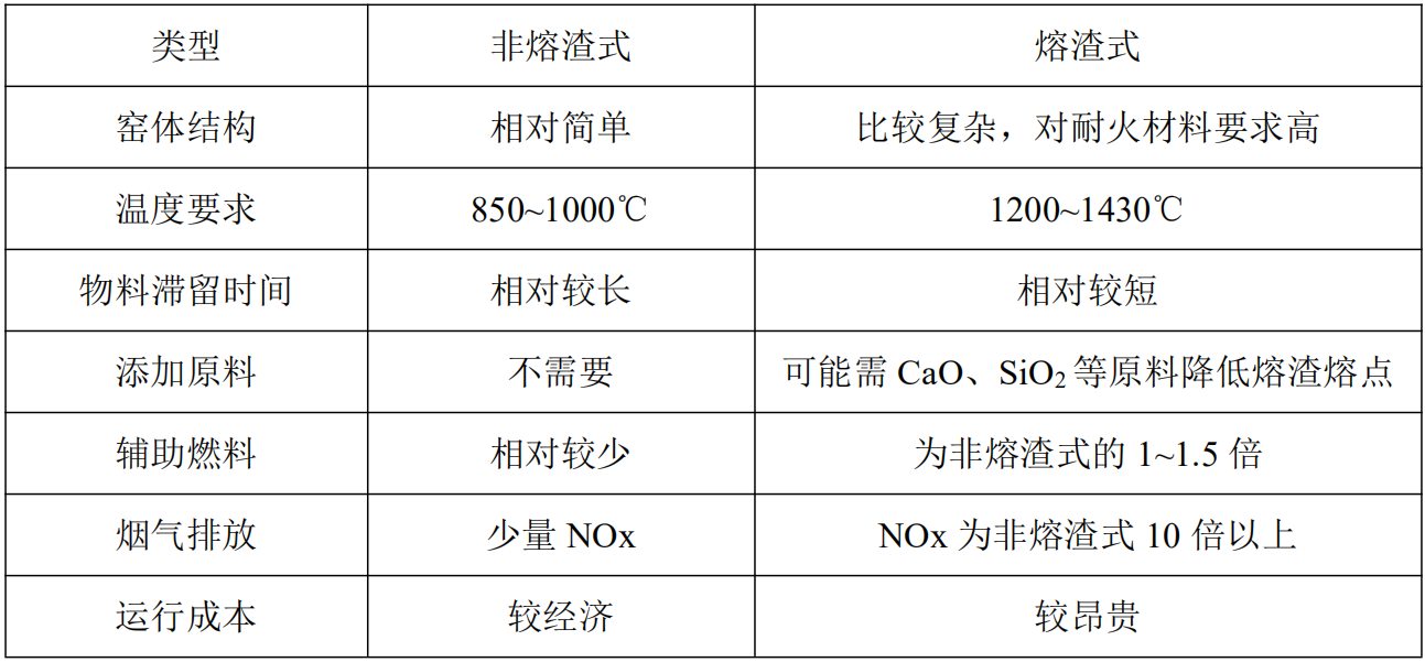 圖注:熔渣式與非熔渣式回轉窯對比