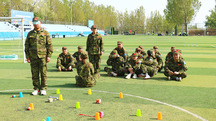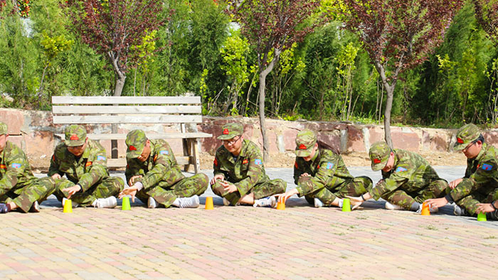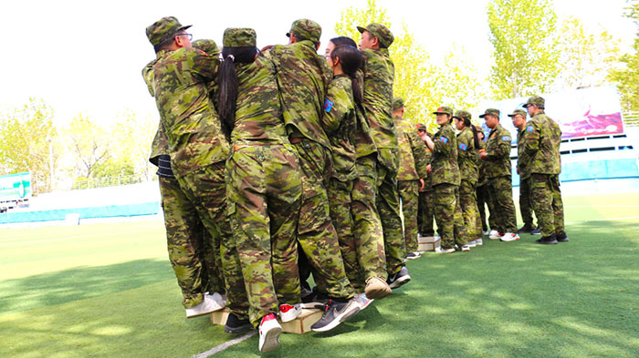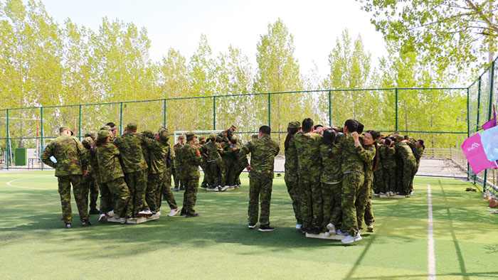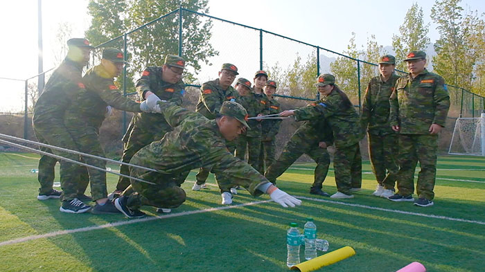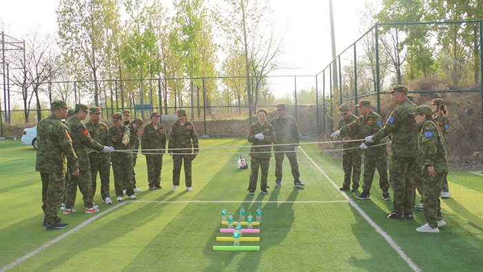 在【沙場點(diǎn)兵】項(xiàng)目,要求每個(gè)隊(duì)選出一個(gè)總指揮做將軍,一個(gè)協(xié)調(diào)者做軍師,剩余伙伴作為士兵。設(shè)定將軍起著總指揮的作用,但無法看見戰(zhàn)場的具體情況,其命令需由軍師來傳達(dá)。而軍師則只能用肢體語言告訴將軍該如何部署,士兵們則需要蒙著眼睛聽將軍命令,從而實(shí)現(xiàn)在沙場前進(jìn)、攻擊。當(dāng)規(guī)則定好,每個(gè)人所要做的就是各司其職。有人規(guī)劃部署,有人上傳下達(dá),有人依命令行事,雖然有理解錯(cuò)誤、聽錯(cuò)命令的情況發(fā)生,大家還是玩得不亦樂乎。在這個(gè)項(xiàng)目中,大家感悟到正確溝通的重要性。