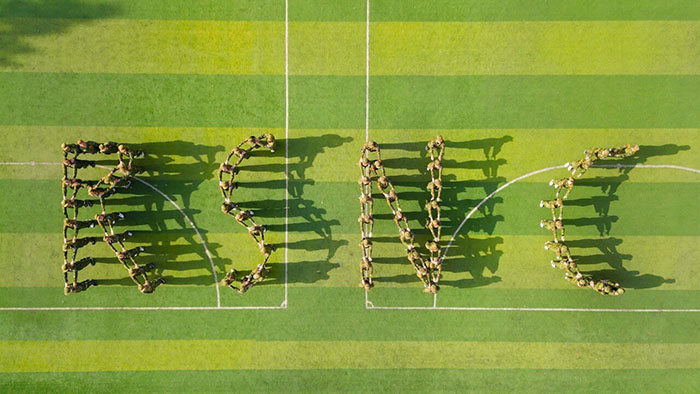 在午后和煦的陽光中,榮盛的小伙伴們肩并肩、心連心,在綠茵操場上圍成了一個(gè)大大的圓環(huán),繪就出屬于榮盛的同心圓,這也正是榮盛大家庭同心同力、圓滿美好的象征。大家還在綠茵草坪上站成了“榮盛耐材“”的英文logo——“RSNC”字樣,為榮盛送上了自己美好的祝福,也為這兩天的拓展訓(xùn)練畫上了wan美的句號(hào)。