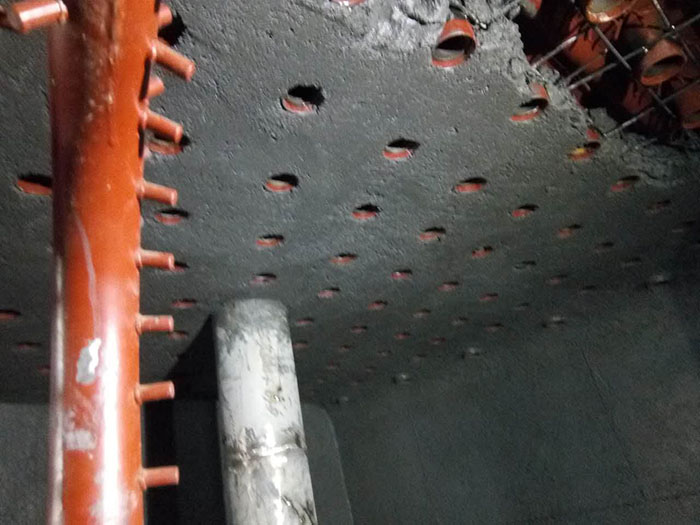 八、可塑料的質量檢查及修補方法a. 可塑料的質量檢查① 可塑料烘干后,用半磅錘輕輕敲擊襯里,襯里應發出清脆回聲,襯里無疏松及無凹凸現象。② 襯里烘干后,表面應平整、無麻面、無明顯裂紋。b. 可塑料的修補方法① 襯里任一缺陷部位進行修補時,應將襯里鑿成外小內大狀,修補的小規模范圍至少包括5個保溫釘(銷釘)的范圍(至少為300×300mm),并且在四周用水濕潤。②所有修補工作應采用和原來施工相同的方法進行。九、可塑料的驗收可塑料施工驗收時,應提交下列技術文件:a. 材料合格證明書b. 材料工程試塊試驗(測試)報告(權威部門檢測報告)c. 隱蔽工程驗收記錄d. 質量檢查及修補記錄